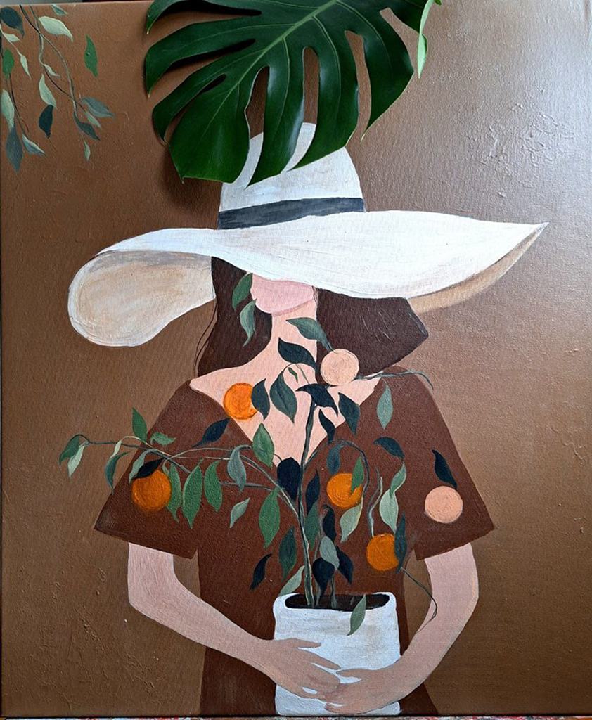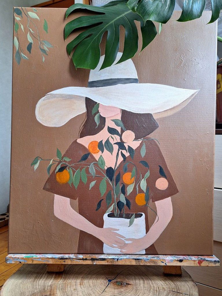 Написана на холсте с подрамником 50 на 60 см, торцы прокрашены в цвет картины. Покрыта защитным лаком. Возможен повтор на любом формате.