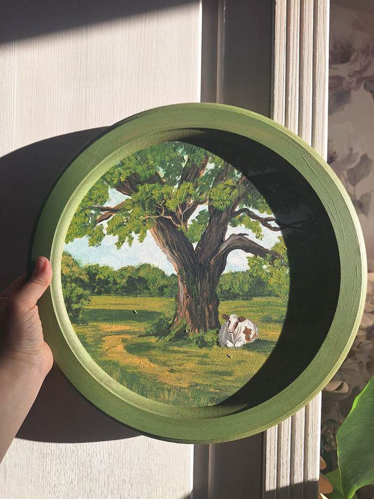 Смотришь на картину и чувствуется дуновение легкого ветерка, шелест кроны дуба, жужжание пчелки..Акрил, защитный лак.Цвет картины на экране монитора, в зависимости от настроек, может отличаться от реального.