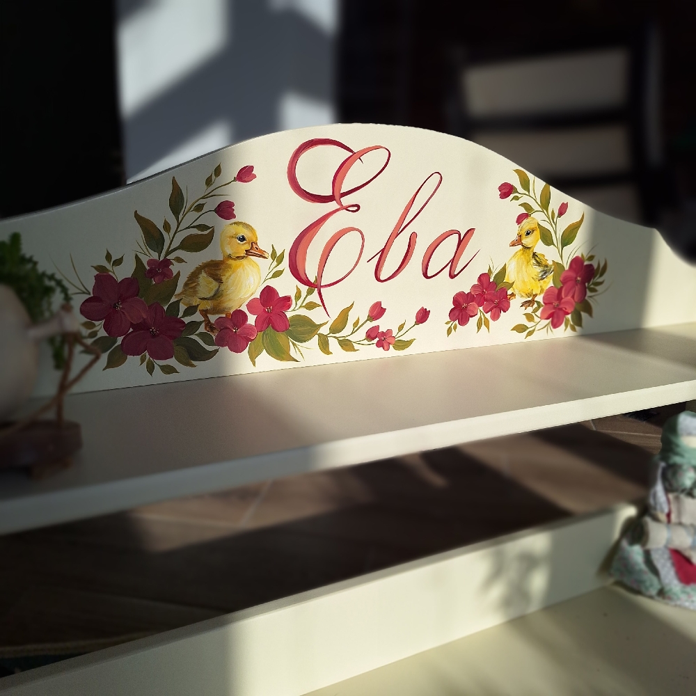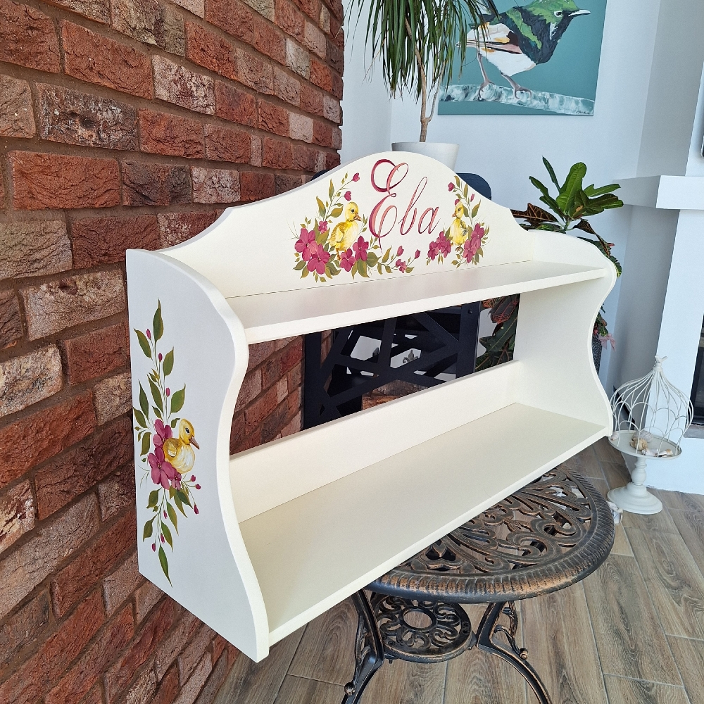 Полочка была выполнена на заказ, эскиз согласовывался с заказчиком. Похожий рисунок можно выполнить на любом предмете мебели, а так же его можно изменить по своему желанию.