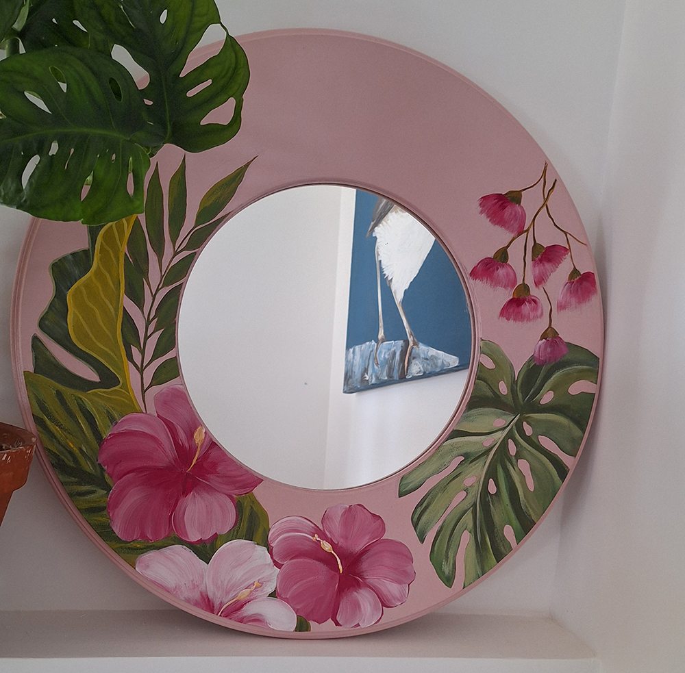 Рама дла зеркала 30 см, ручная роспись.Возможен повтор на любой форме и размереВнешний диаметр 50 см