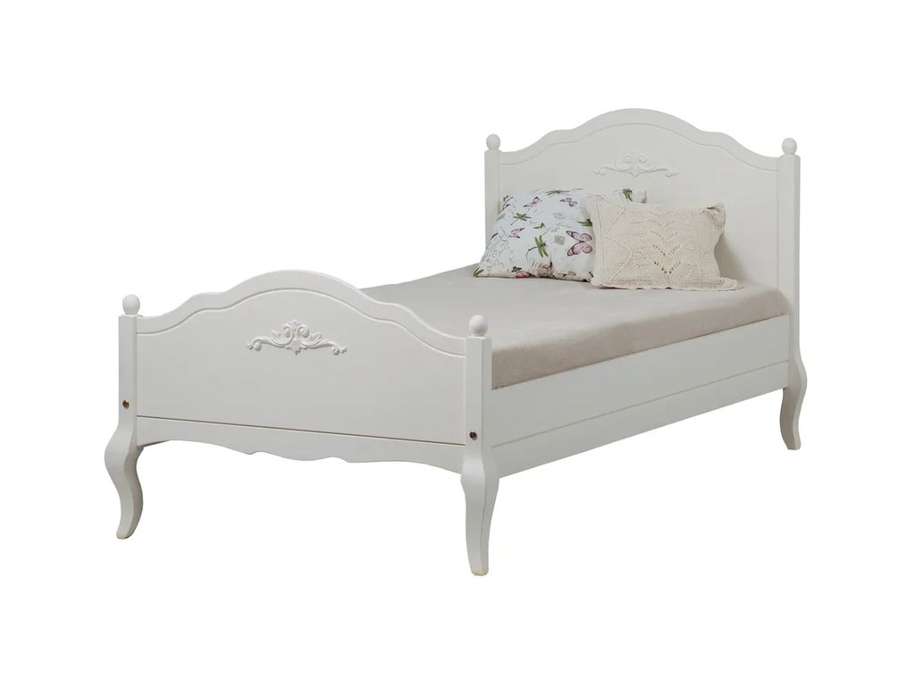 Цвет кровати на титульной фотографии — скандик белый. Стоимость зависит от выбранного покрытия.