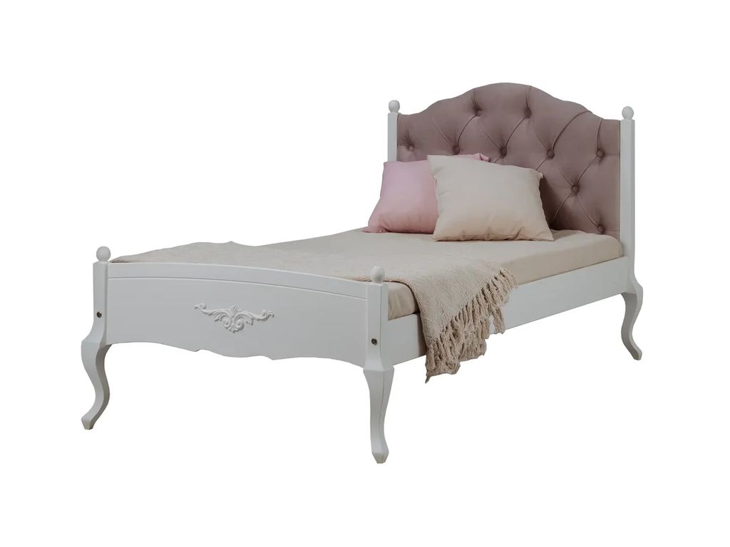 Цвет кровати на титульной фотографии — скандик белый. Стоимость зависит от выбранного покрытия.