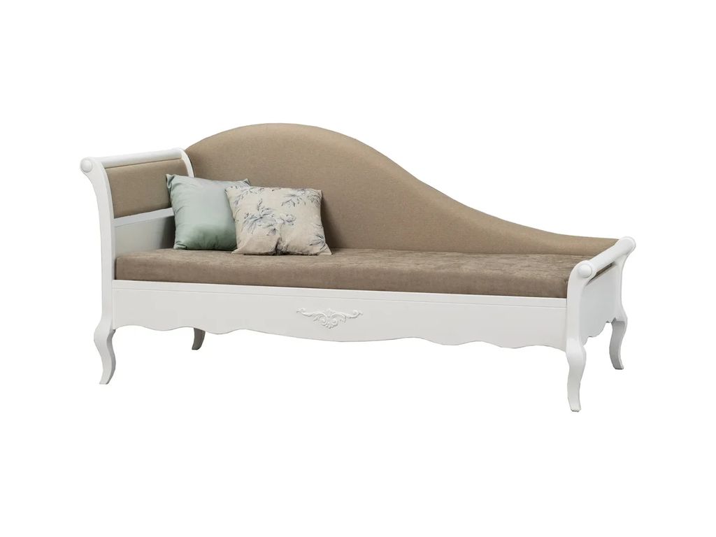 Цвет тахты на титульной фотографии — скандик белый. Стоимость зависит от выбранного покрытия.