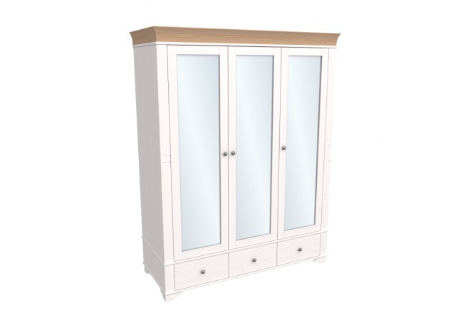 Описание: шкаф имеет три отделения: левое и правое отделение с полкой и штангой, среднее отделение с 3 полками. Под каждой дверью имеется выдвижной ящик на роликовых направляющих. Дополнительно можно приобрести полки в левое или правое отделение.