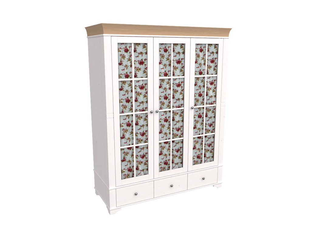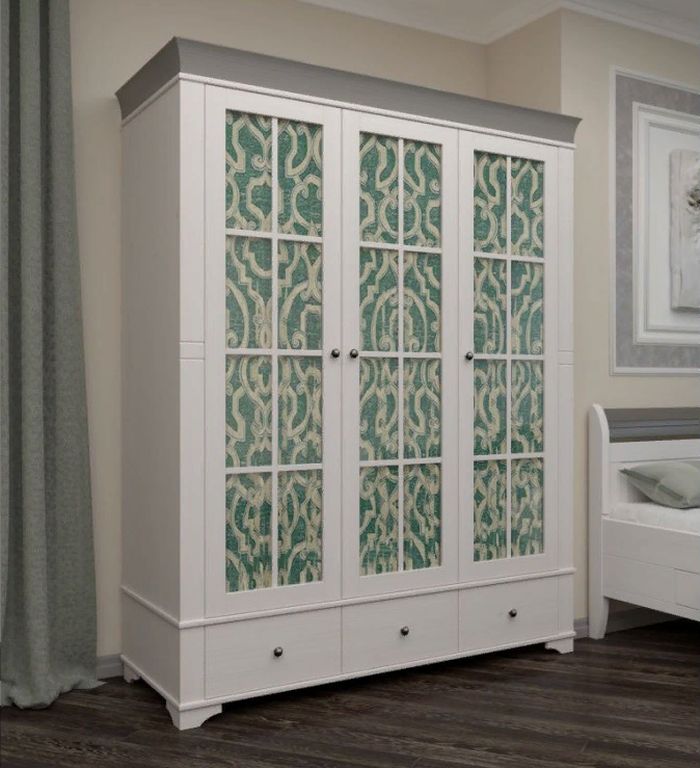 Описание: шкаф имеет 3 отделения: правое и левое отделения с полкой и штангой под полкой, среднее отделение имеет 3 полки, которые регулируются по высоте. Под каждой дверью со стеклом имеется выдвижной ящик на роликовых направляющих. Шторы в комплект не входят и приобретаются отдельно. Дополнительно можно приобрести полки в левое или правое отделение.
