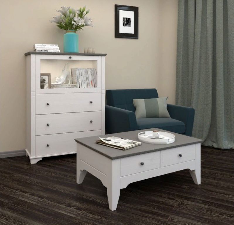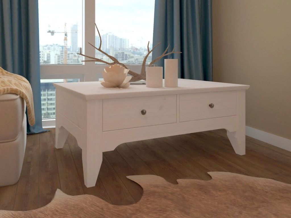 Описание: журнальный стол с двумя выдвижными ящиками на направляющих. С обратной стороны стола для симметрии сделана имитация фасадов.