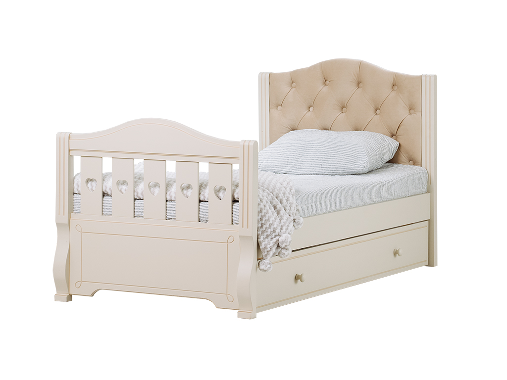 Цвет кровати на титульной фотографии - скандик белый с патиной.