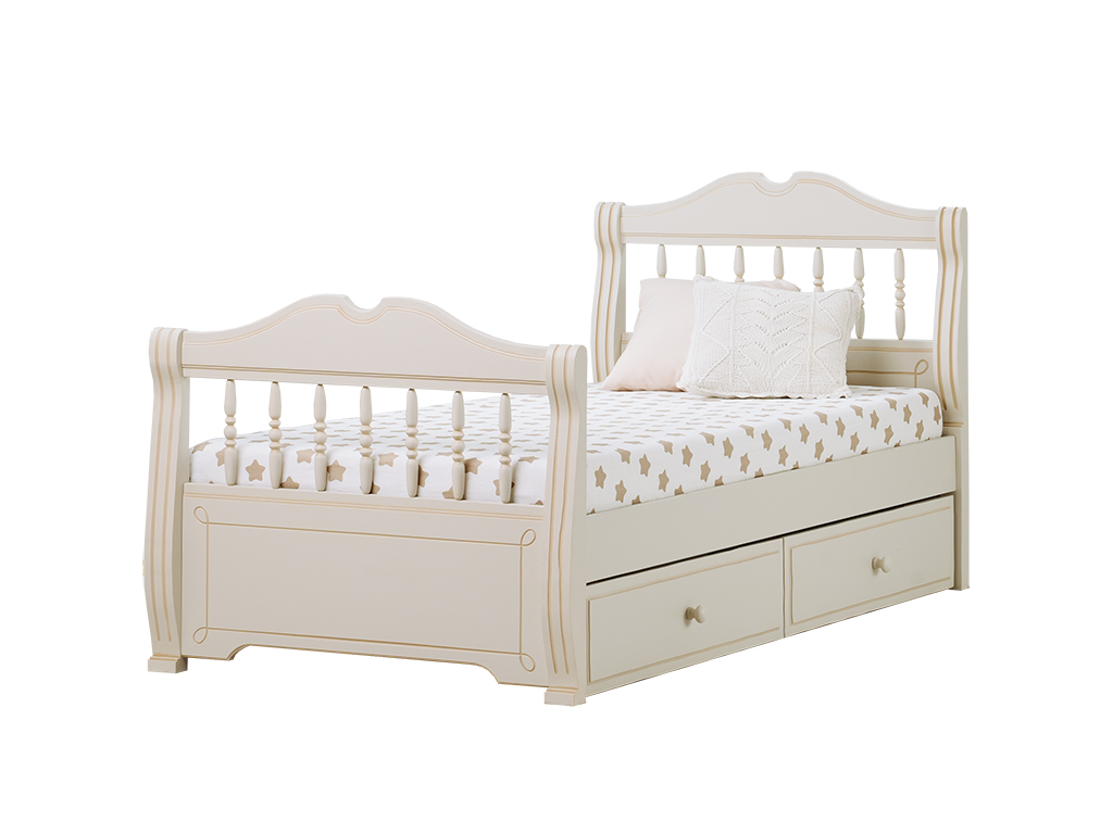 Цена указана за кровать в бесцветном лаке. Цвет кровати на титульной фотографии - скандик белый с патиной. Стоимость зависит от выбранного покрытия. При заказе мебели в составном цвете цена считается по более дорогому.