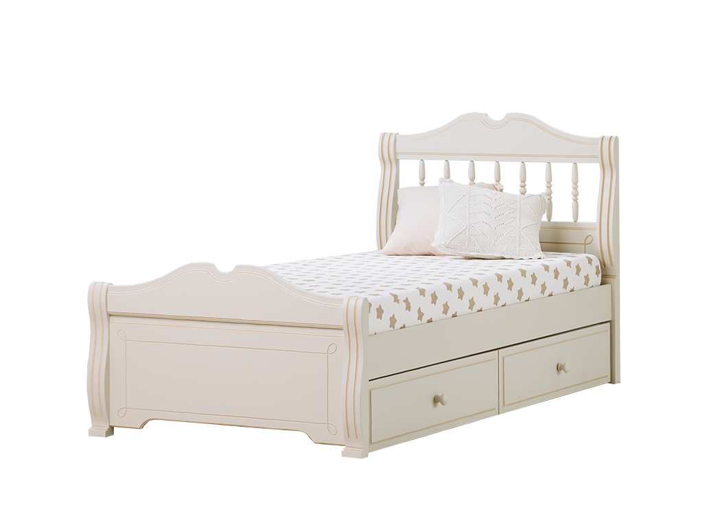 Цена указана за кровать в бесцветном лаке. Цвет кровати на титульной фотографии - скандик белый с патиной. Стоимость зависит от выбранного покрытия. При заказе мебели в составном цвете цена считается по более дорогому.