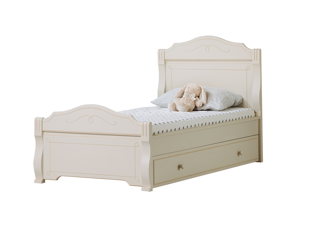 Цена указана за кровать в бесцветном лаке. Цвет кровати на титульной фотографии - скандик белый с патиной. Стоимость зависит от выбранного покрытия. При заказе мебели в составном цвете цена считается по более дорогому.