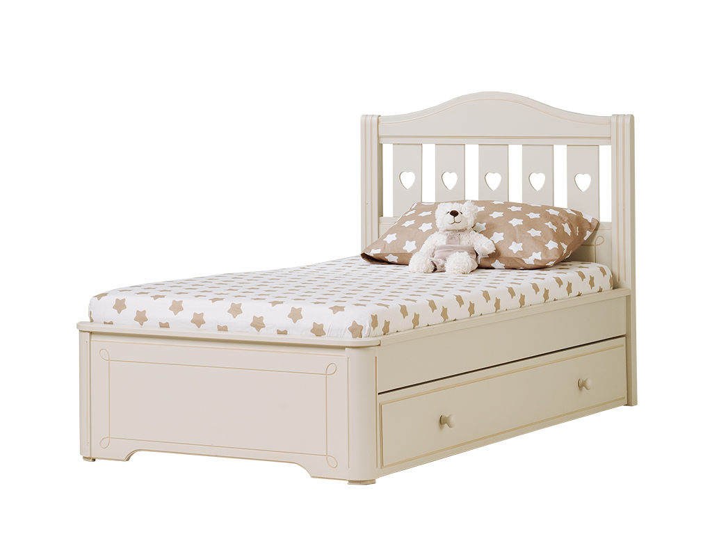 Материал - сосна, вставки изголовья - МДФ, дно ящика - ДВП.