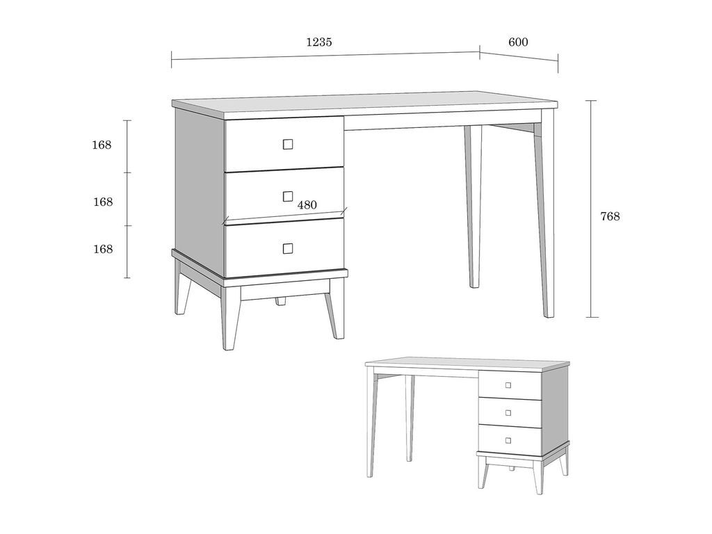 Описание: стол письменный оснащён тумбой с тремя ящиками с одной стороны. Ящики можно расположить как справа, так и слева.