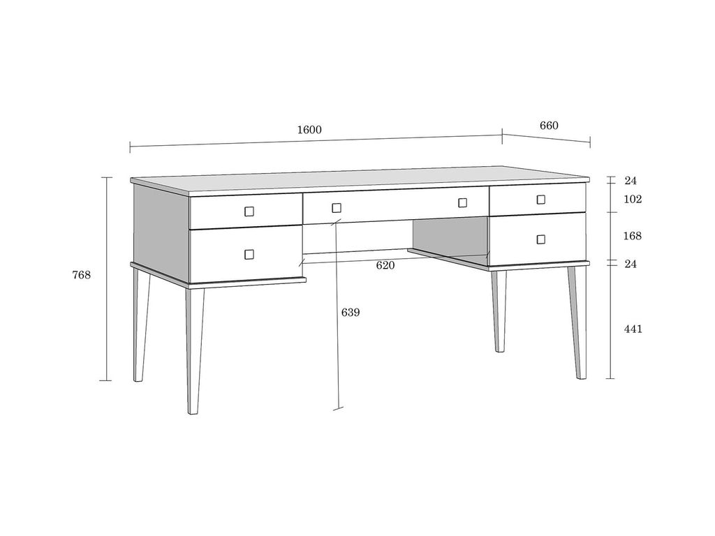 Описание: стол письменный оснащён пятью ящиками полного выдвижения.