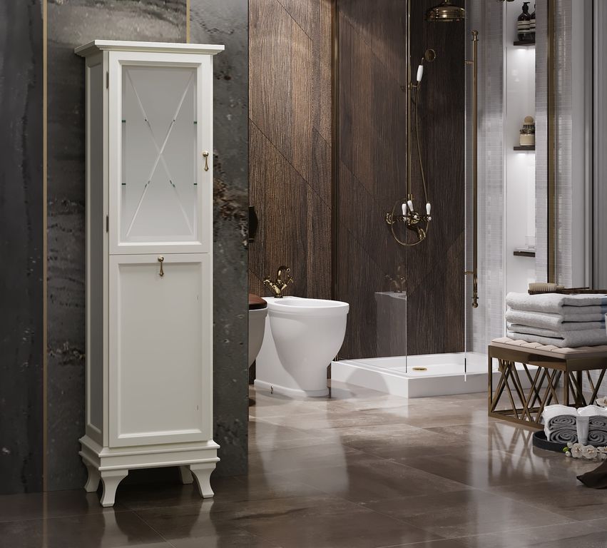 Глубокая и функциональная керамическая раковина дополняет комплектацию мебели из коллекции БОРДЖИ. Оригинальный и элегантный пенал из коллекции мебели для ванной комнаты БОРДЖИ укомплектован бельевой корзиной. Створки фасадов оснащены петлями плавного закрывания.