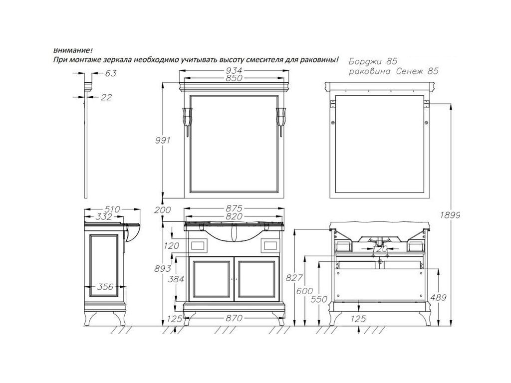 | Размер зеркала (Ш×В×Г), мм | 934×991×63 |