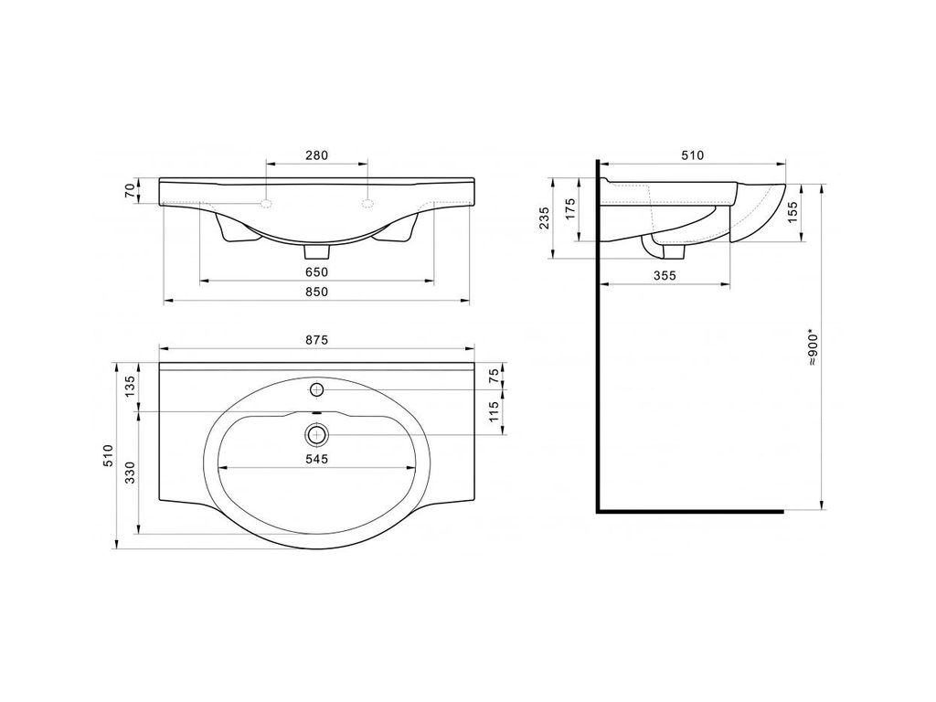 | Размер раковины (Ш×В×Г), мм | 875×235×510 |