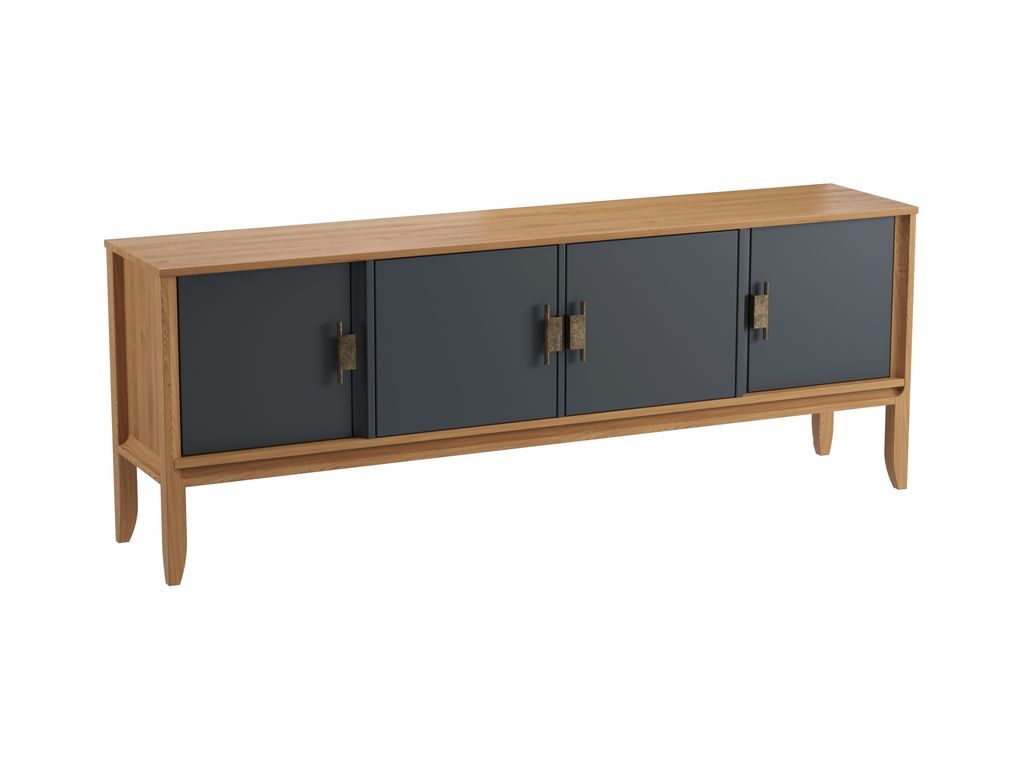 Описание: медиаконсоль с 4-мя дверками, за каждой дверкой расположена полка. Петли дверок с доводчиками.