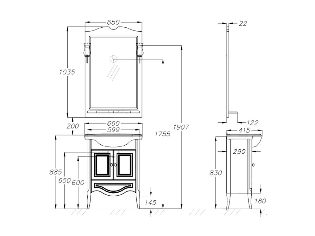 | Размер зеркала (Ш×В×Г), мм | 650×1035×122 |