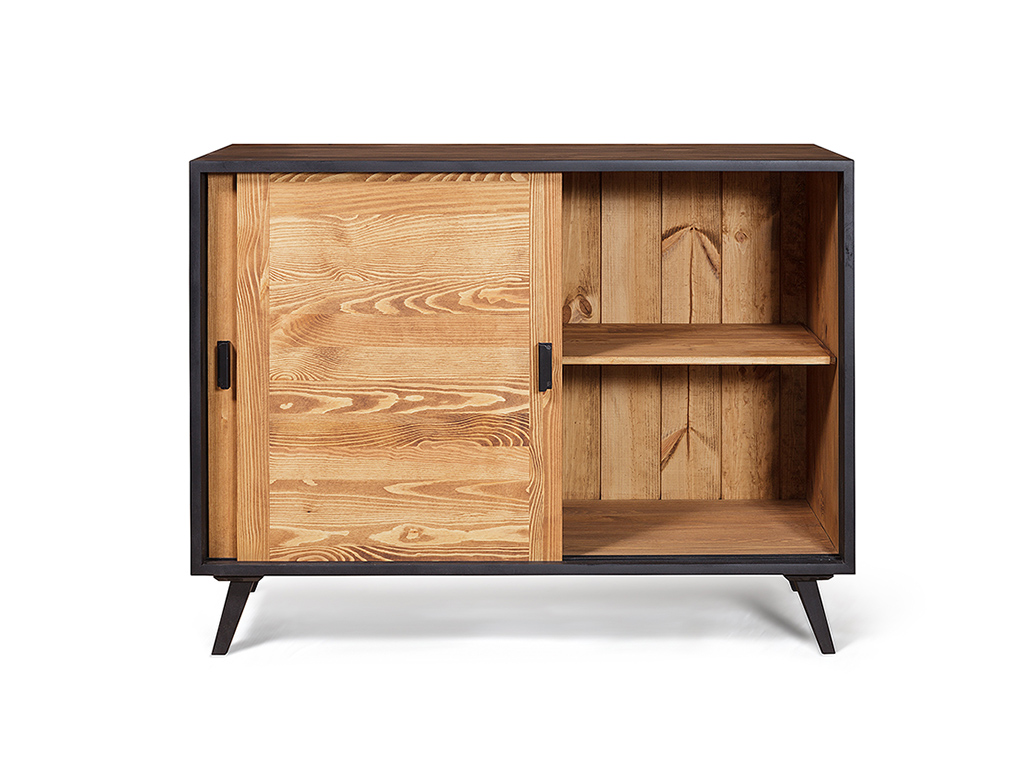 Массив сосны. 2 раздвижные дверки, 1 полка. Дверки на деревянных рельсах. Высота ножек 15 см