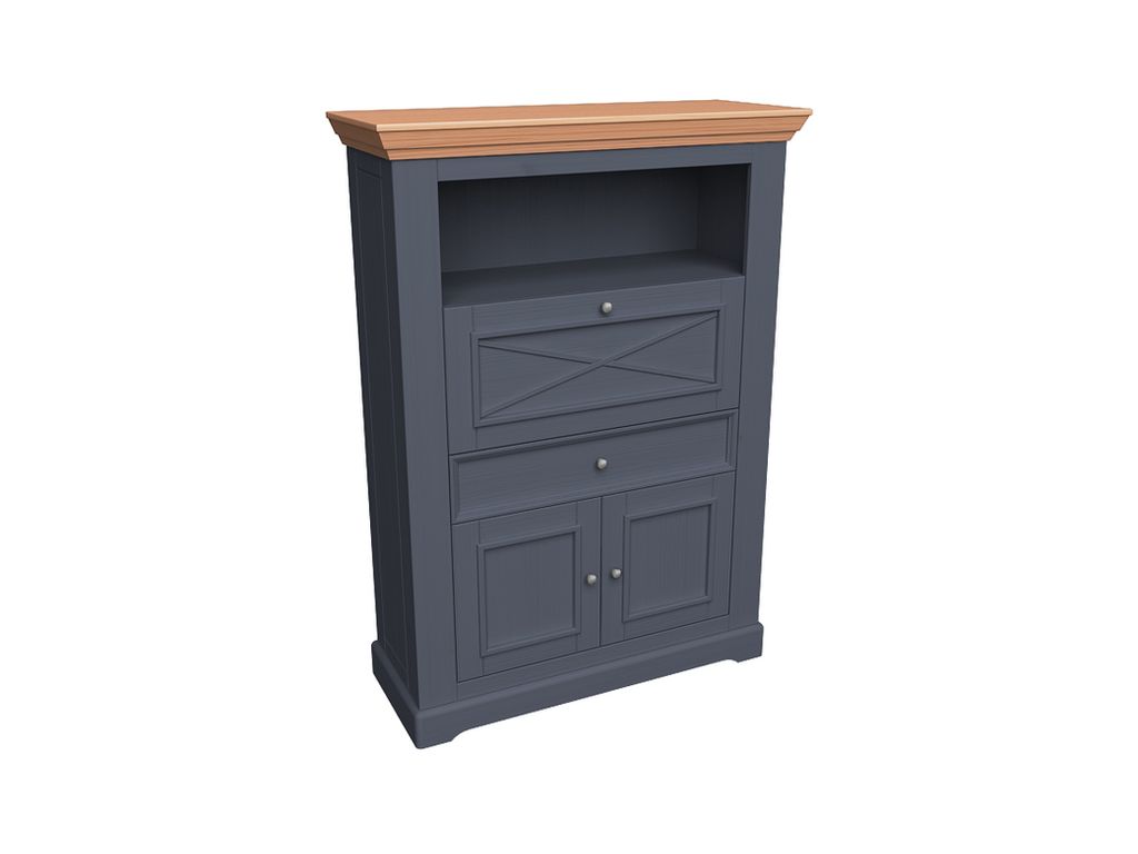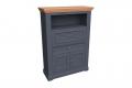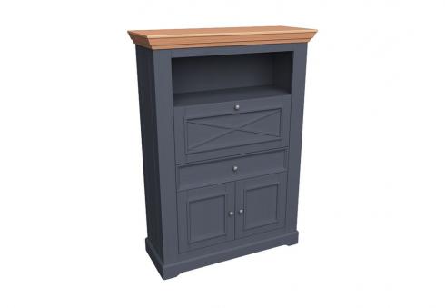 Комод имеет выдвижной ящик на роликовых направляющих, две глухих и одну откидную дверки.