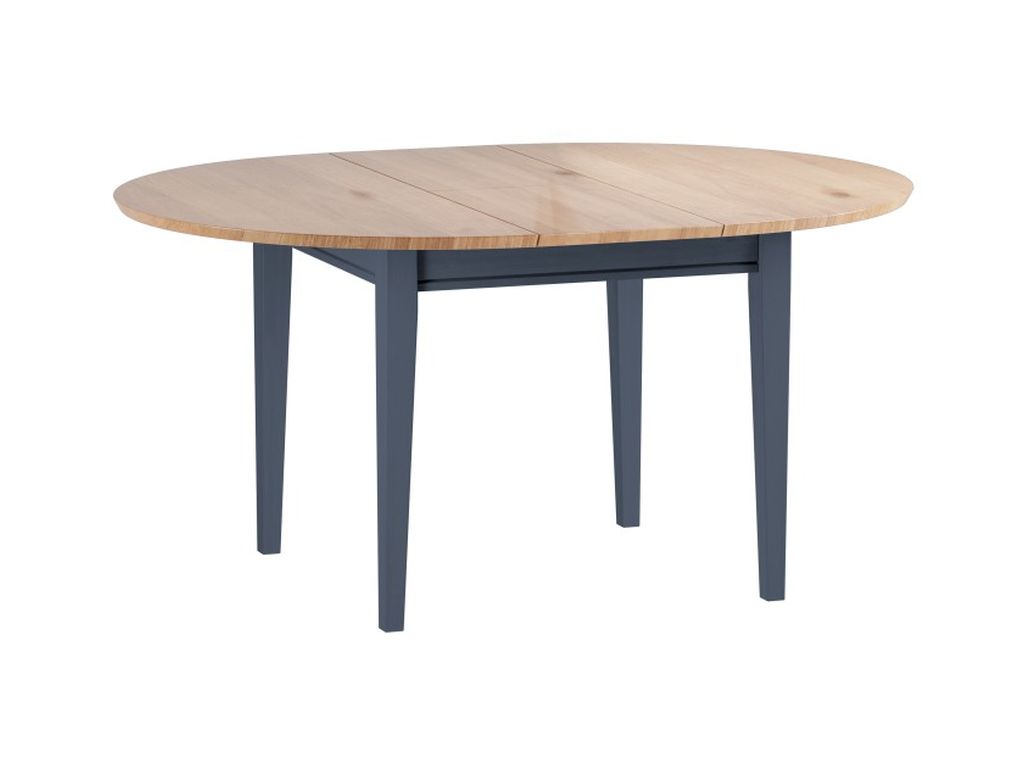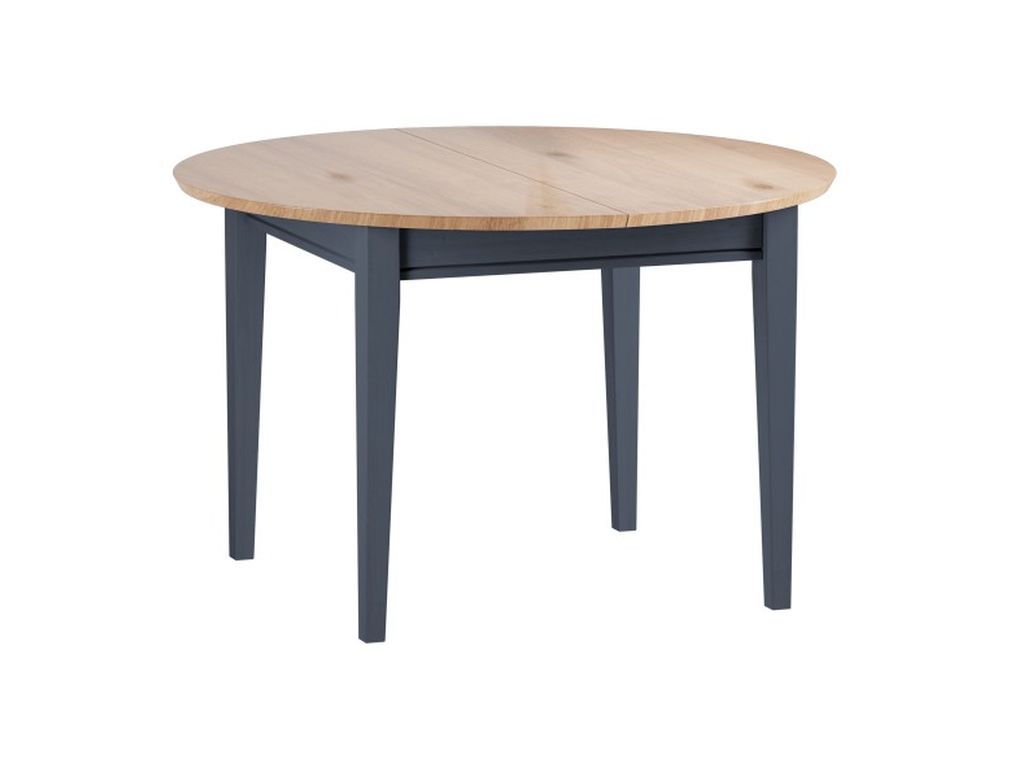 Раскладной обеденный стол из массива сосны. В сложенном состоянии вставка располагается под столешницей. Диаметр стола в сложенном состоянии 110 см, в разложенном состоянии размер стола 110х145 см.