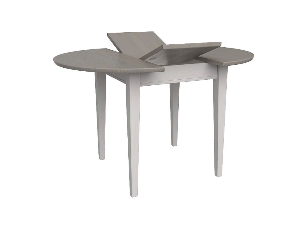 Раскладной обеденный стол из массива сосны. В сложенном состоянии вставка располагается под столешницей. Диаметр стола в сложенном состоянии 90 см, в разложенном состоянии размер стола 90х125 см.