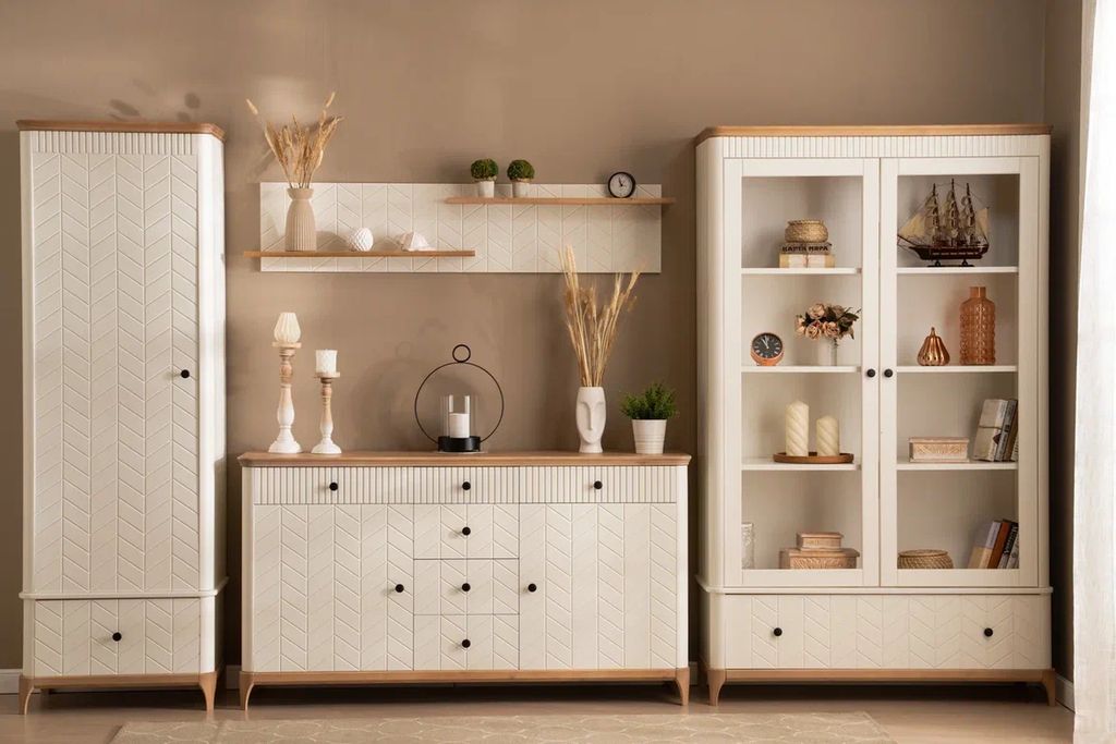 В данном изделии фасад с фрезеровкой "ёлочка" изготавливается только из МДФ (технологическая особенность), окрашивание возможно только плотными эмалями и эмалями с патиной.