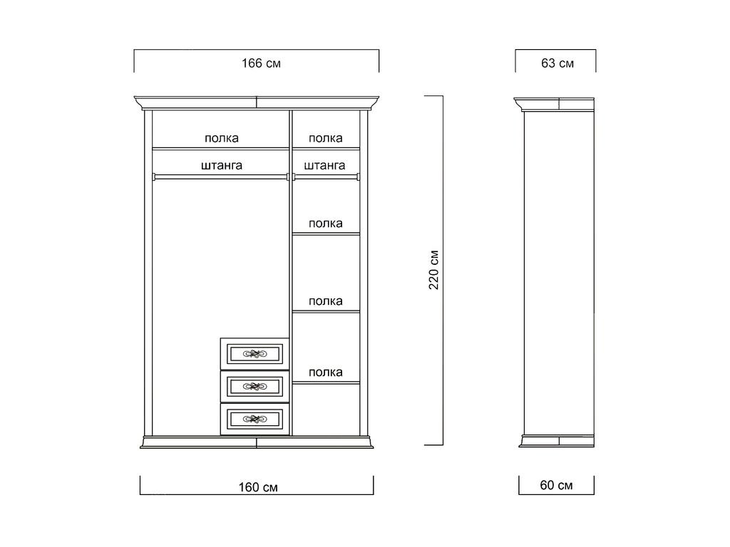 Задняя стенка: оргалит (без доплаты), фанера (с доплатой).