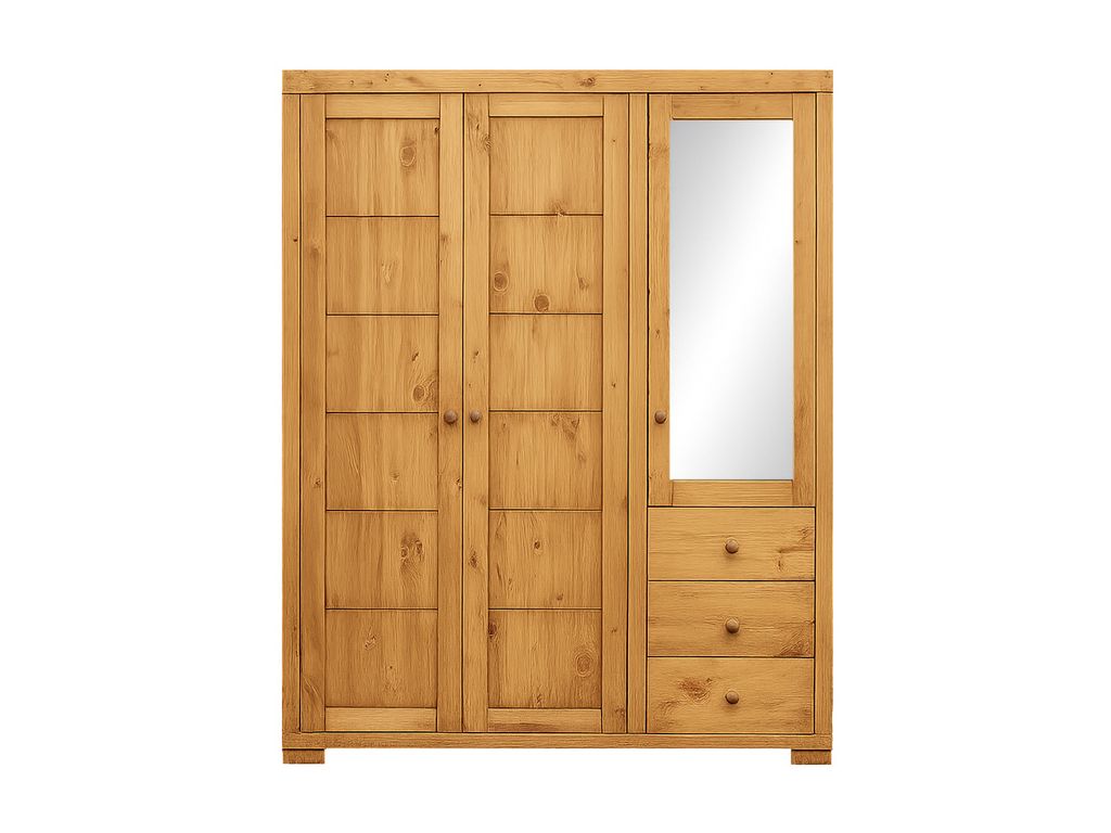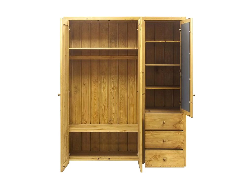 Состоит за 2-х частей. Ширина двойного отделения — 106 см, одинарного — 55 см. За зеркалом 3 полки, расстояние между полками 29,5 см. За дверьми штанга длиной 103 см. Поставляется в 2-х упаковках.
