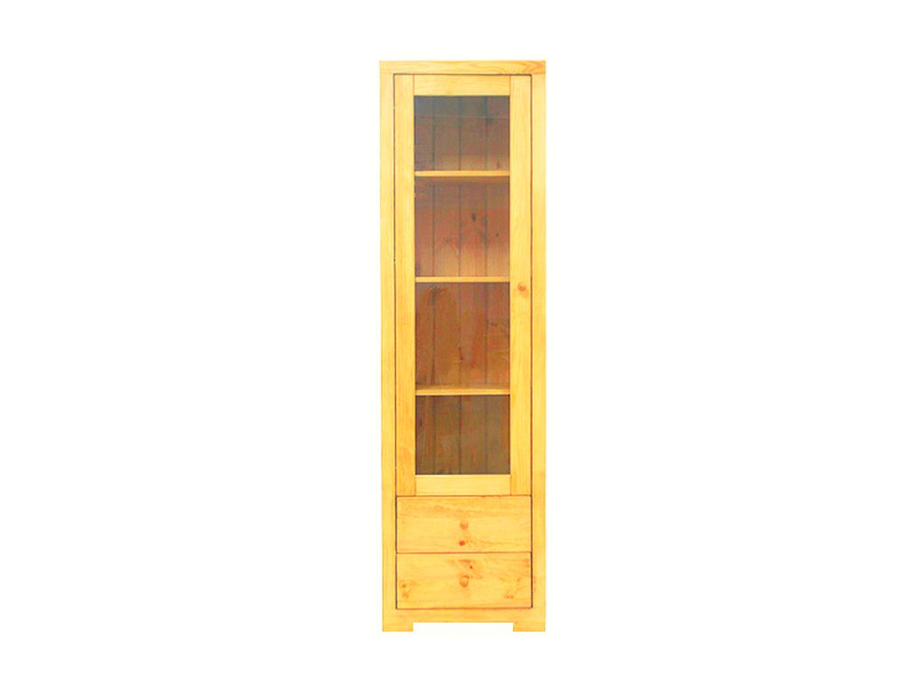 1 стеклянная дверь и 2 выдвижных ящика на телескопических направляющих. За дверью — 3 полки. Ручки деревянные 3 шт. Поставляется в сборе.