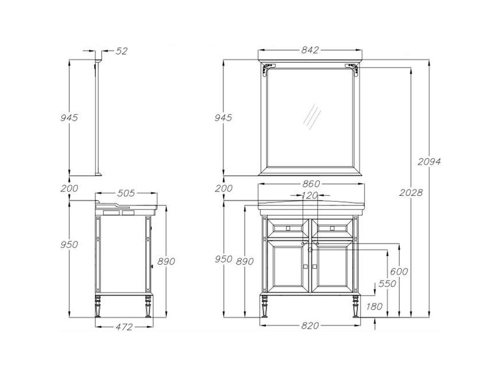 | Размер зеркала (Ш×В×Г), мм | 842×944×52 |