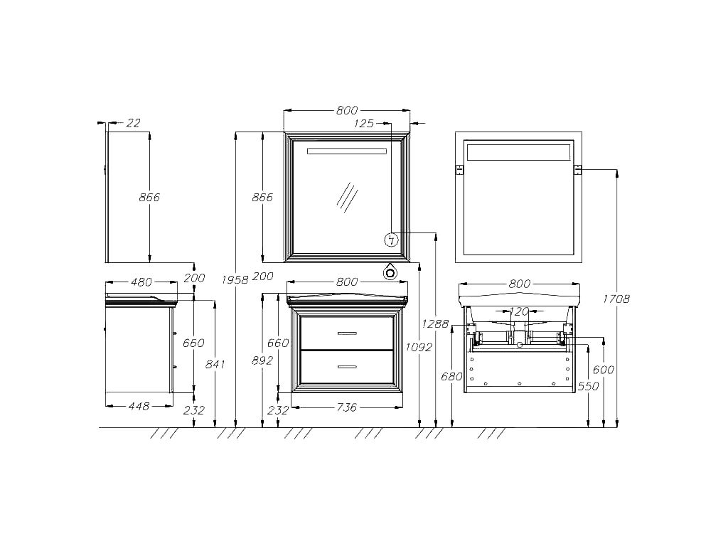 | Размер зеркала (Ш×В×Г), мм | 800×866×22 |