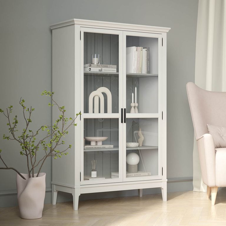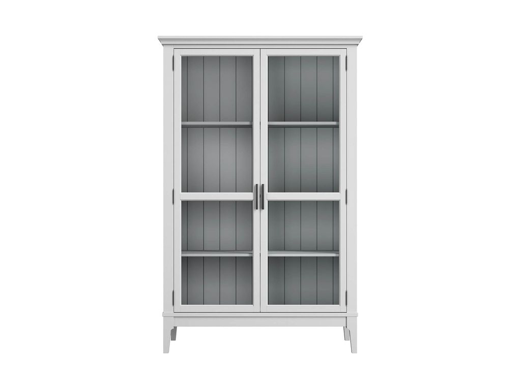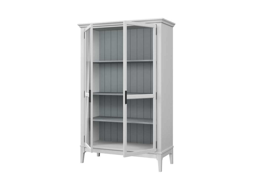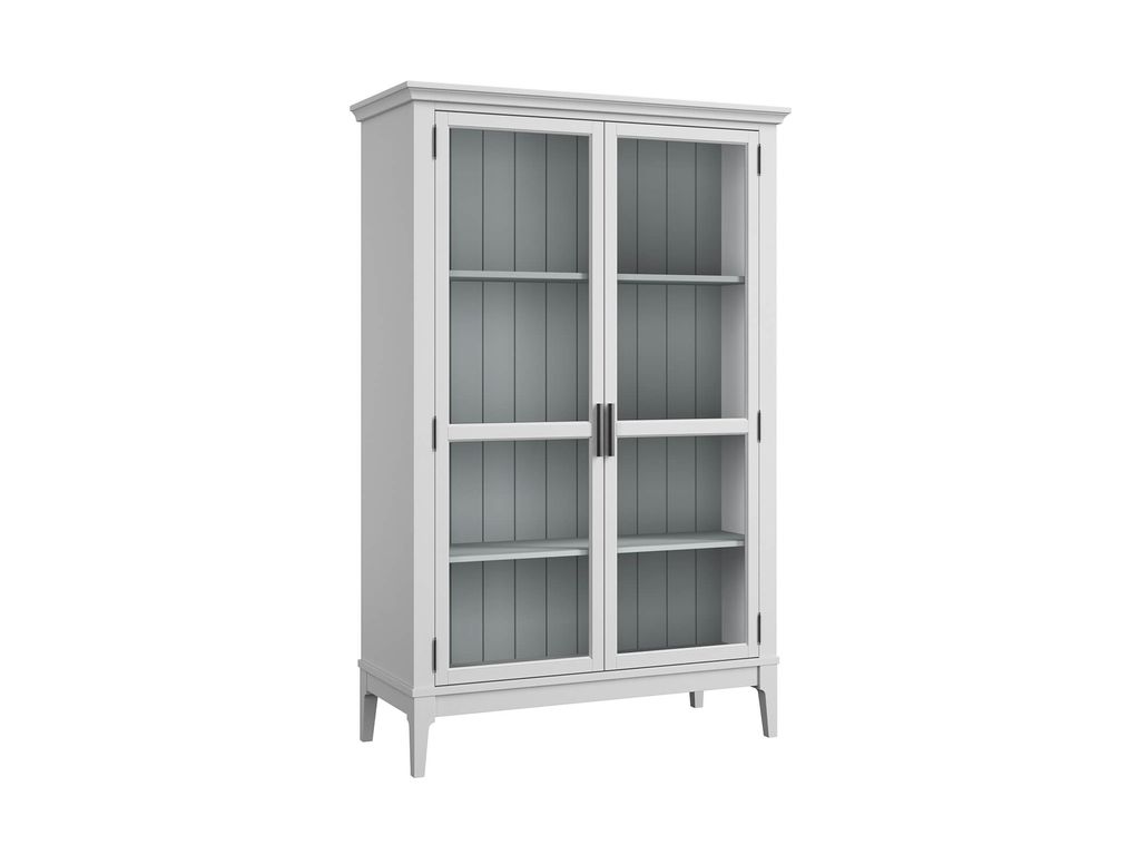 Описание: высокий шкаф с распашными стеклянными дверями.