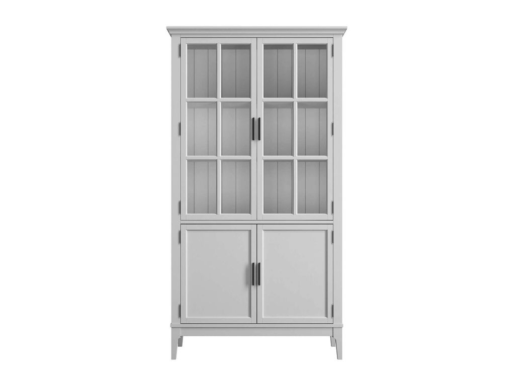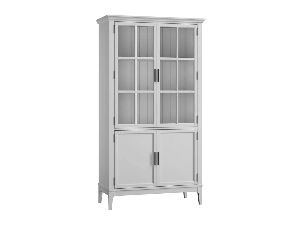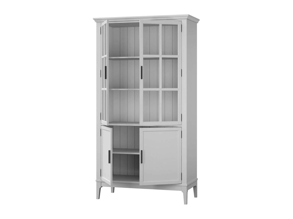 Описание: высокий шкаф с распашными стеклянными и филенчатыми дверями.