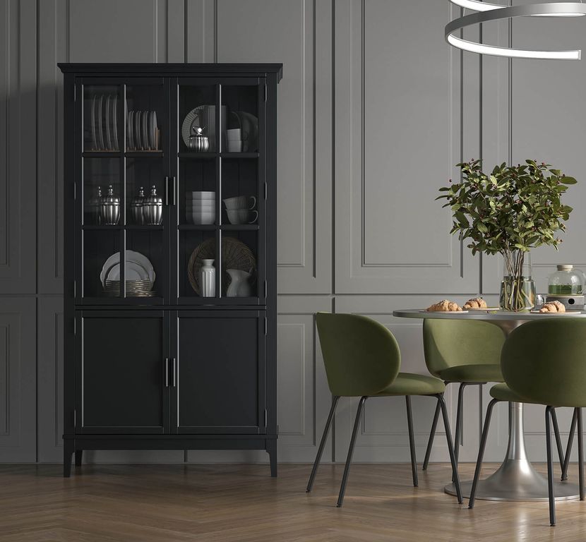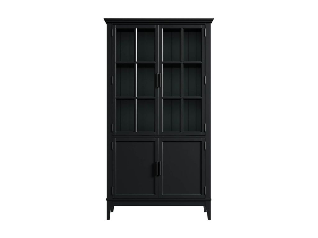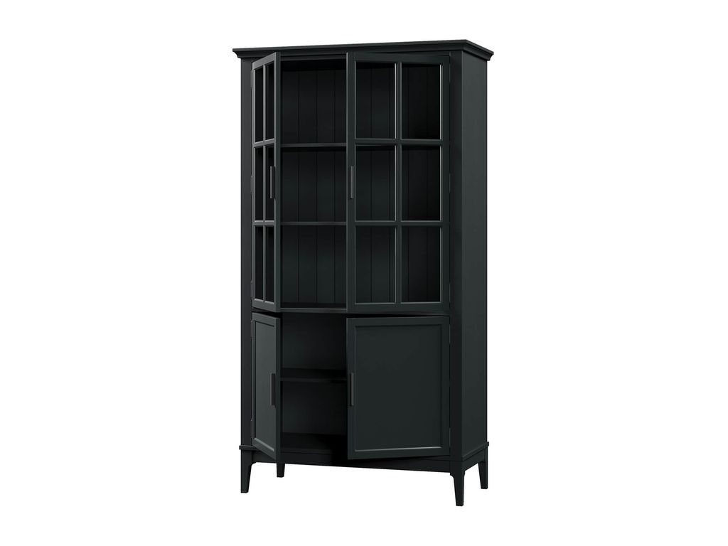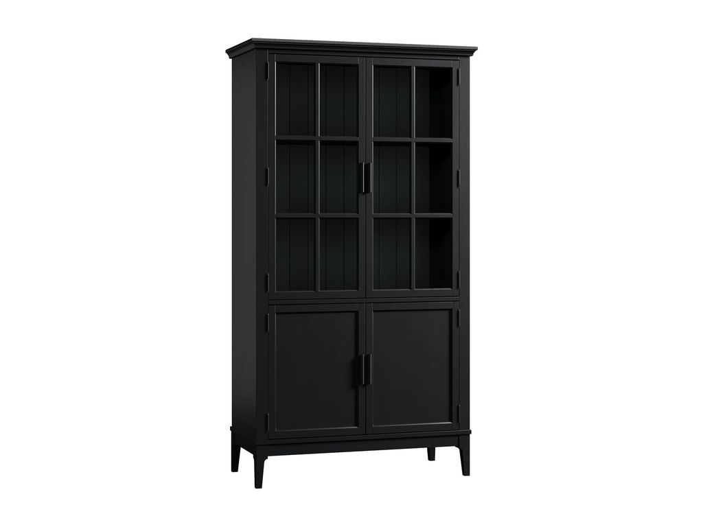 Описание: высокий шкаф с распашными стеклянными и филенчатыми дверями.