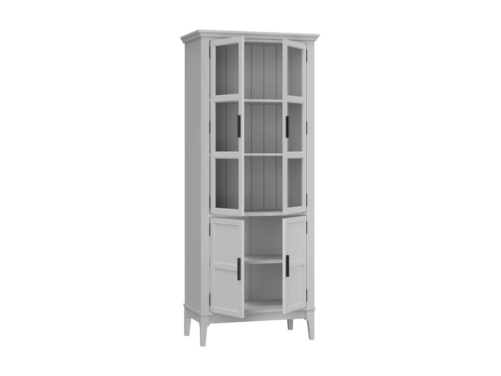 Описание: высокий шкаф с распашными стеклянными и филенчатыми дверями.