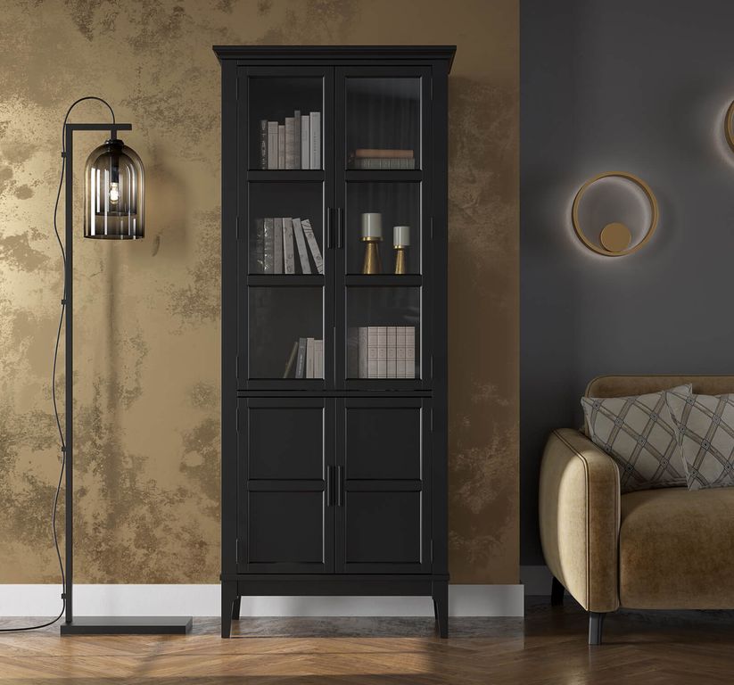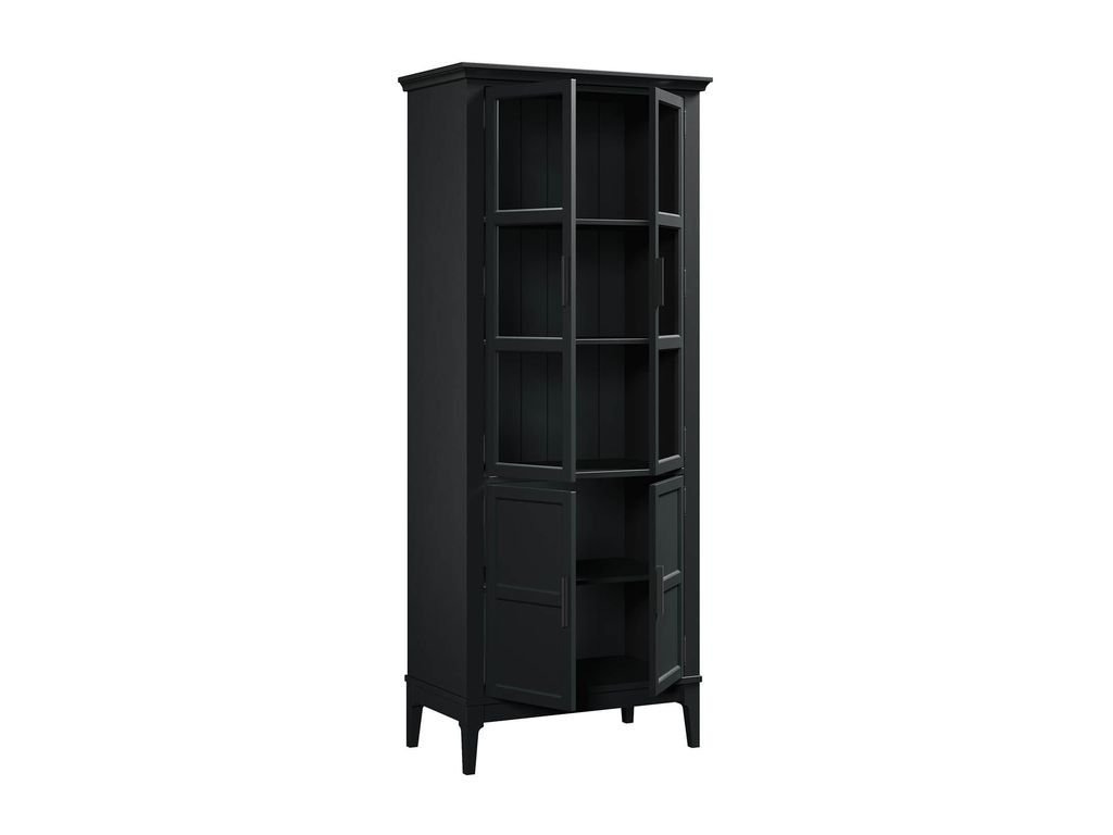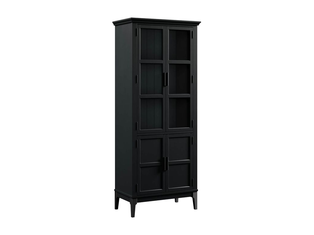 Описание: высокий шкаф с распашными стеклянными и филенчатыми дверями.