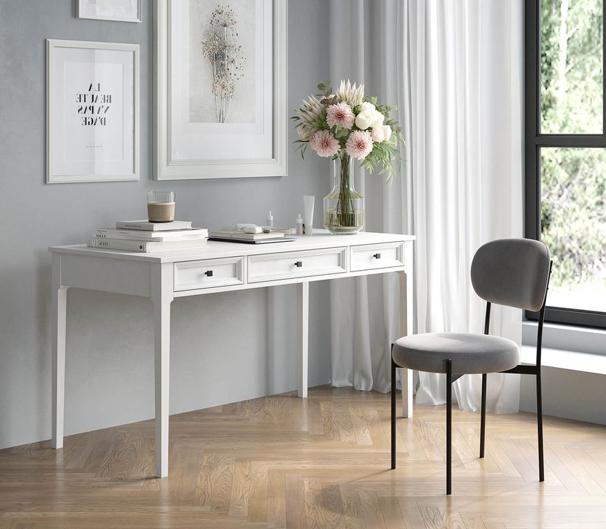 Описание: письменный стол с широкой столешницей, под которой расположены три выдвижных ящика.