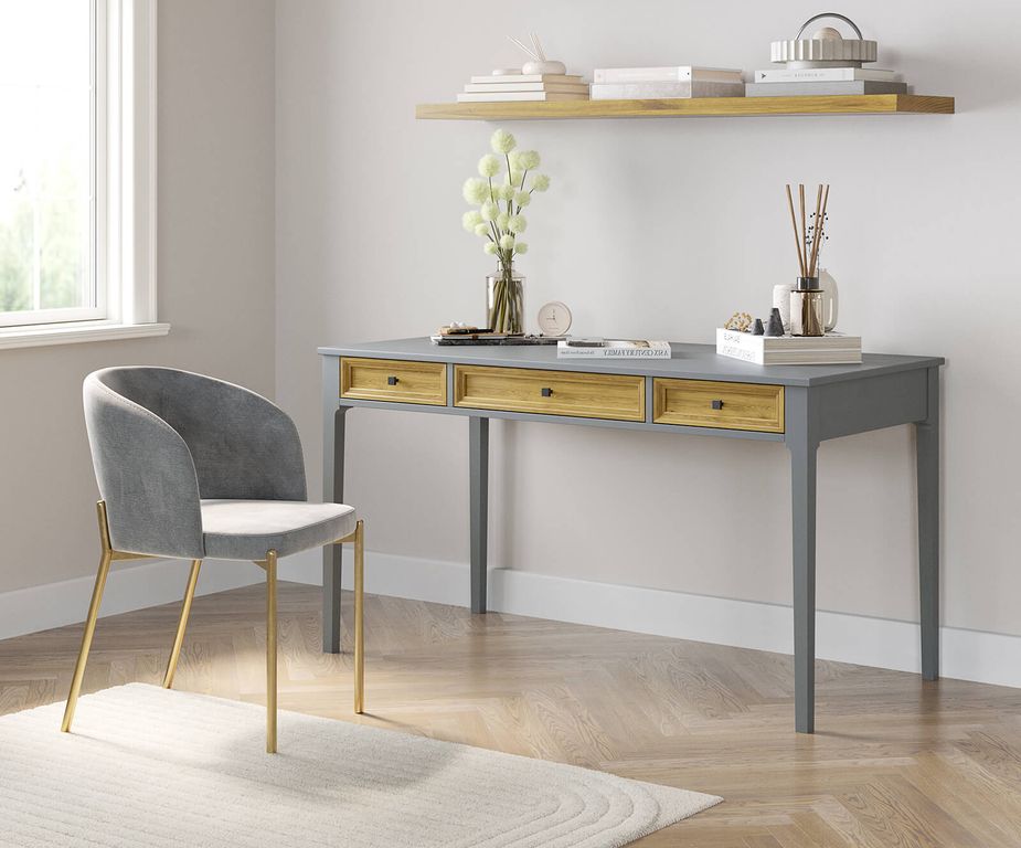 Описание: письменный стол с широкой столешницей, под которой расположены три выдвижных ящика.