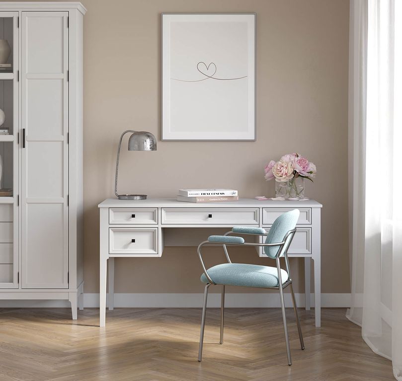 Описание: письменный стол с широкой столешницей, под которой расположены пять выдвижных ящиков.