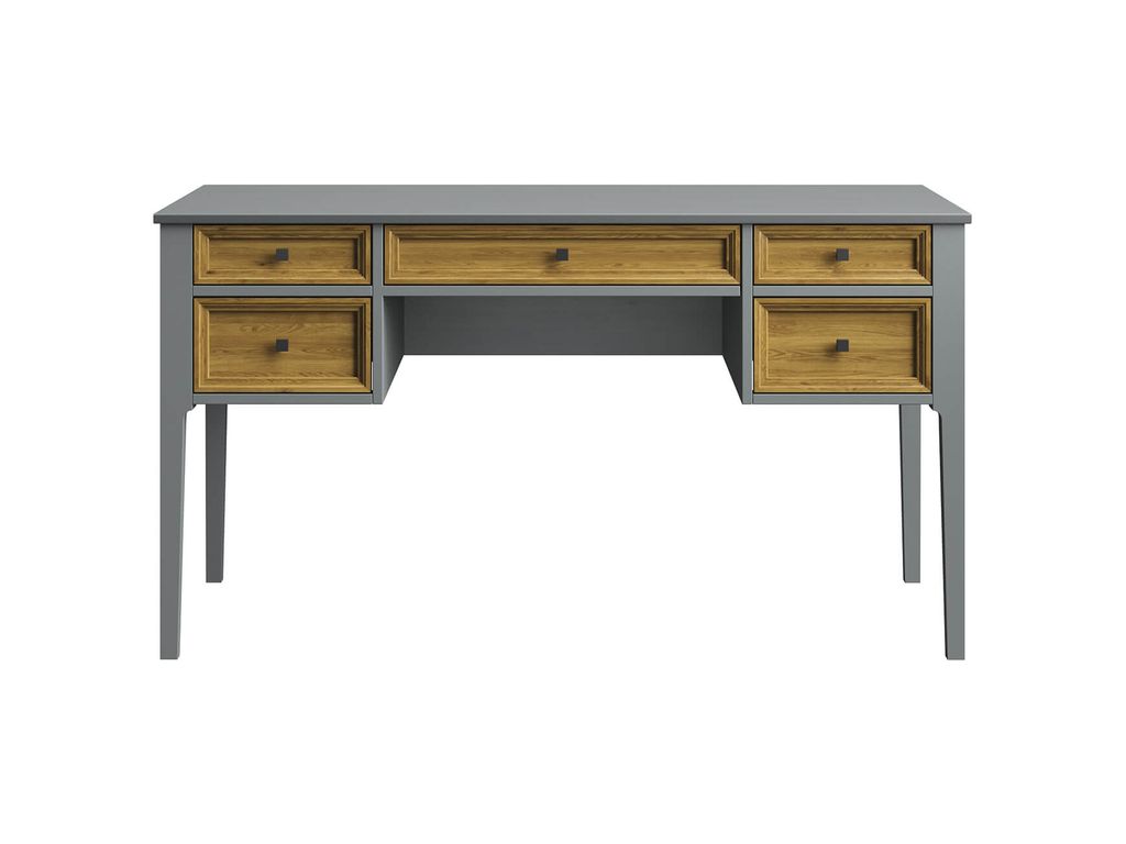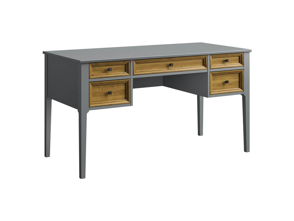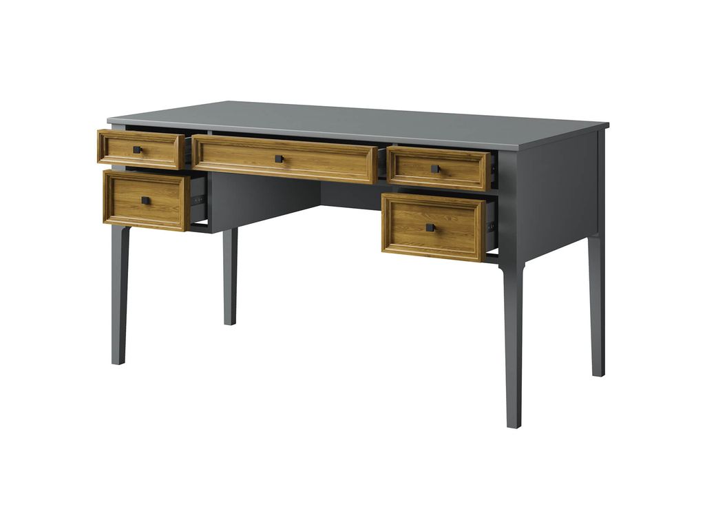 Описание: письменный стол с широкой столешницей, под которой расположены пять выдвижных ящиков.