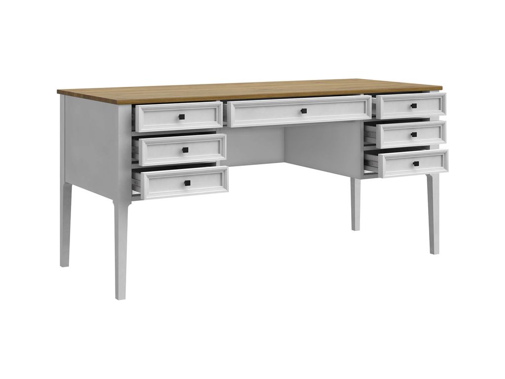 Описание: письменный стол с широкой столешницей, под которой расположены семь выдвижных ящиков.