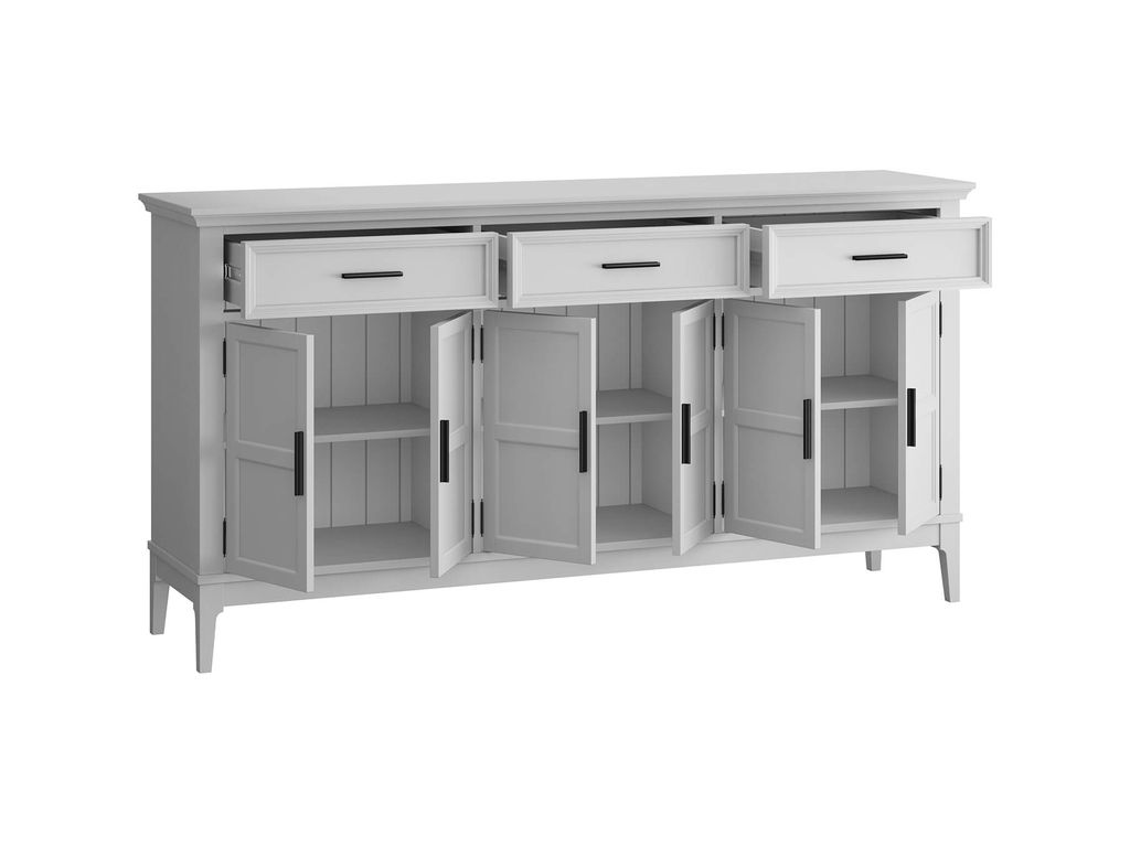 Описание: широкая и вместительная тумба. Состоит из трех вместительных отделений с полками за распашными дверками, сверху три выдвижных ящика. Подойдет как для прихожей, спальни или гостиной в городской квартире, так и для загородного дома.