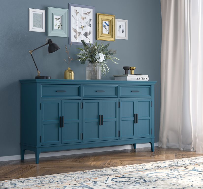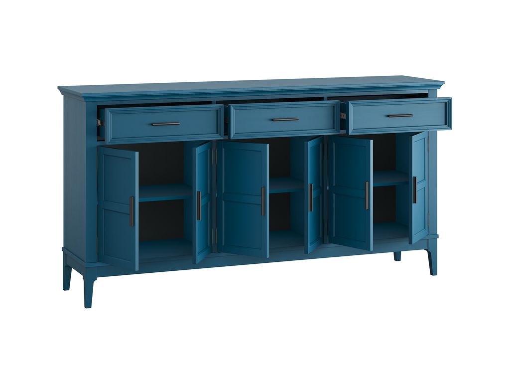 Описание: широкая и вместительная тумба. Состоит из трех вместительных отделений с полками за распашными дверками, сверху три выдвижных ящика. Подойдет как для прихожей, спальни или гостиной в городской квартире, так и для загородного дома.