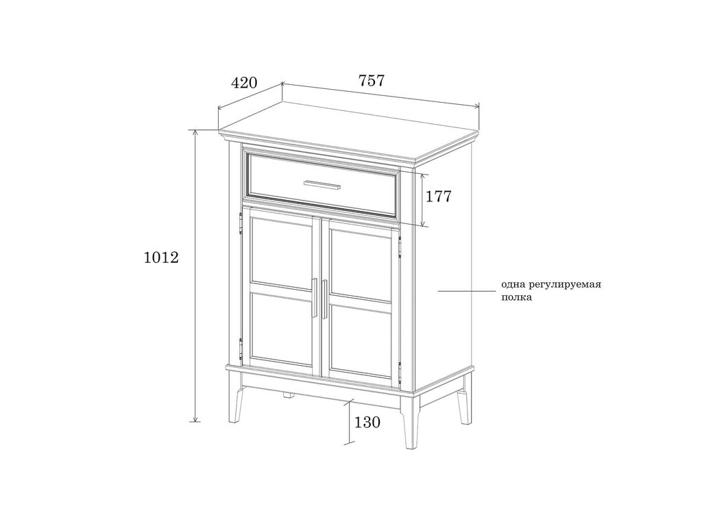 Описание: тумба состоит из отделения с полкой за распашными дверками, сверху один выдвижной ящик.