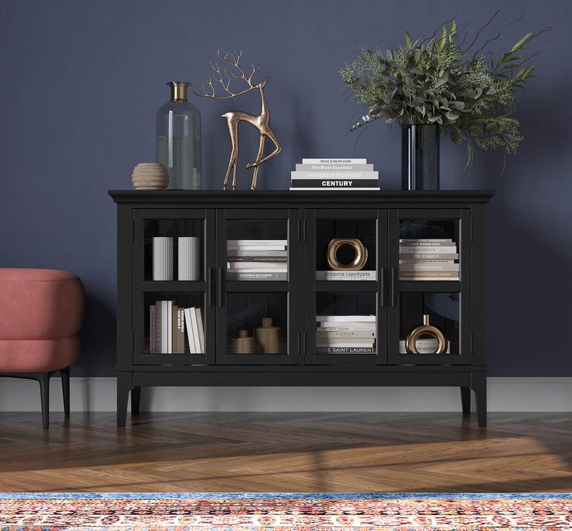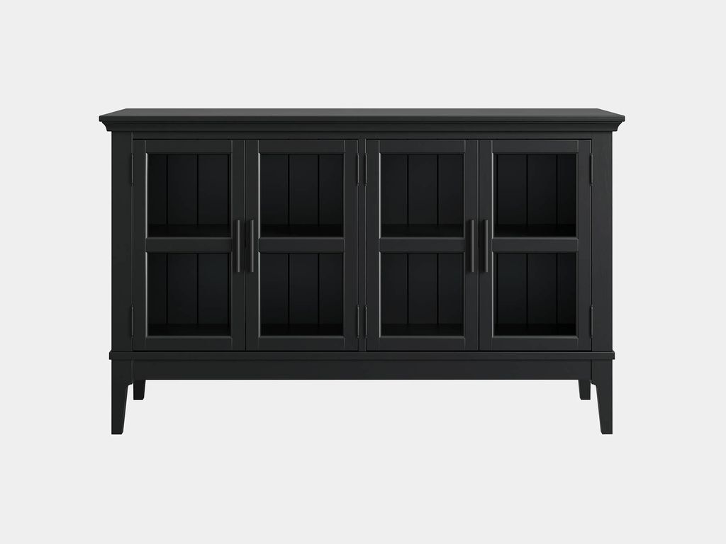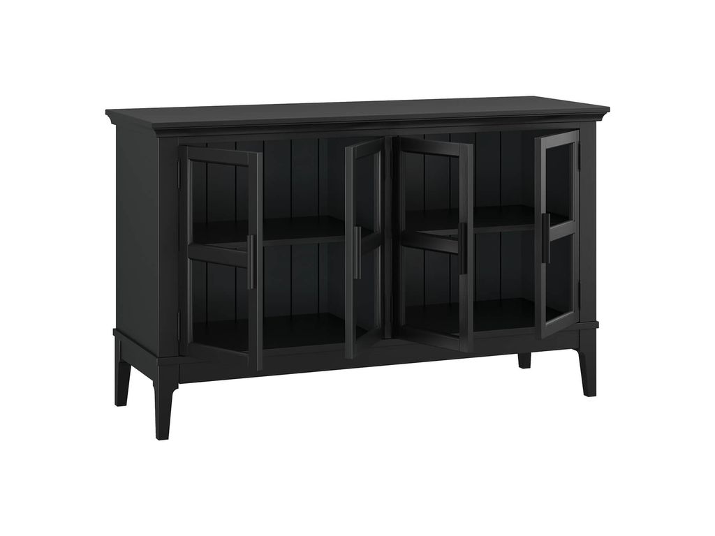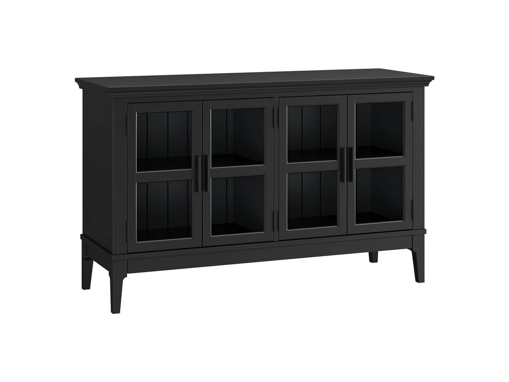 Описание: тумба ТВ состоит из двух отсеков за четырьмя стеклянными дверками. Внутри две широкие полки.