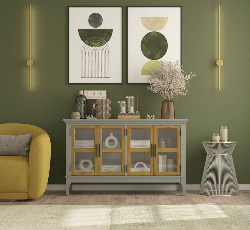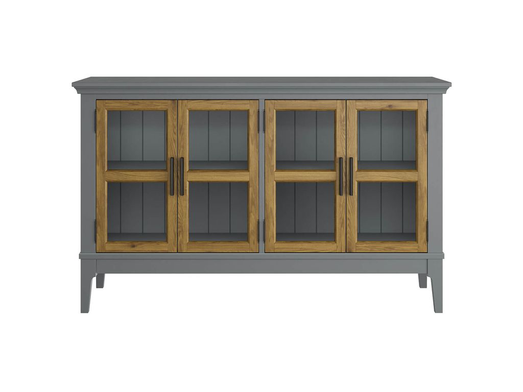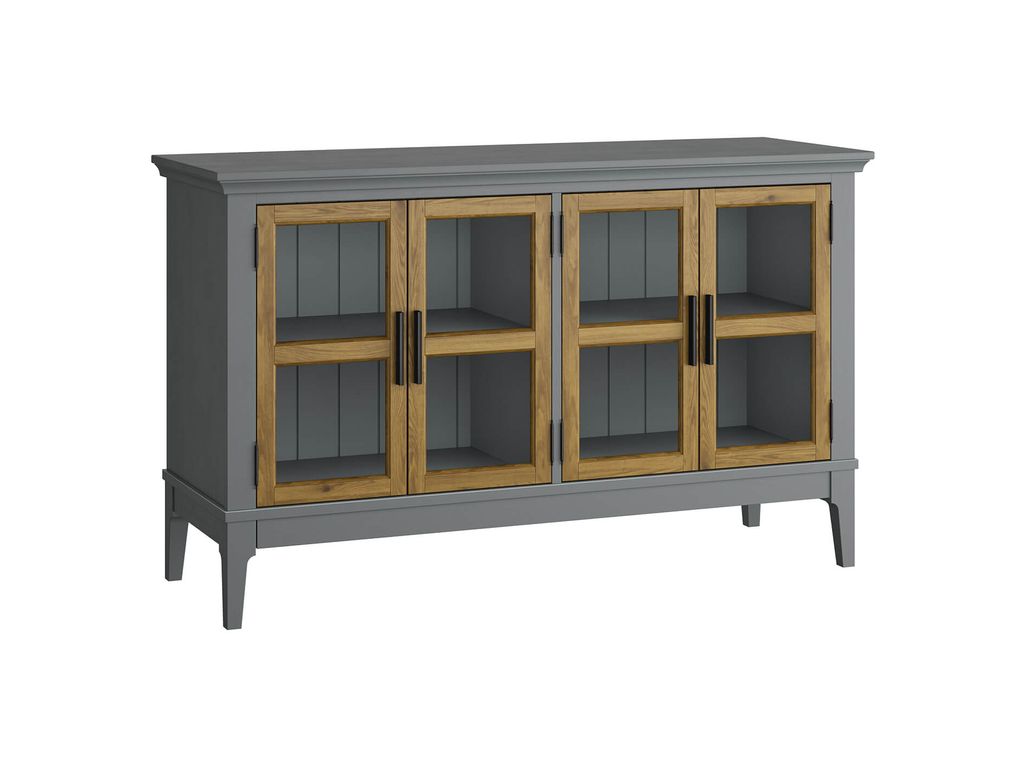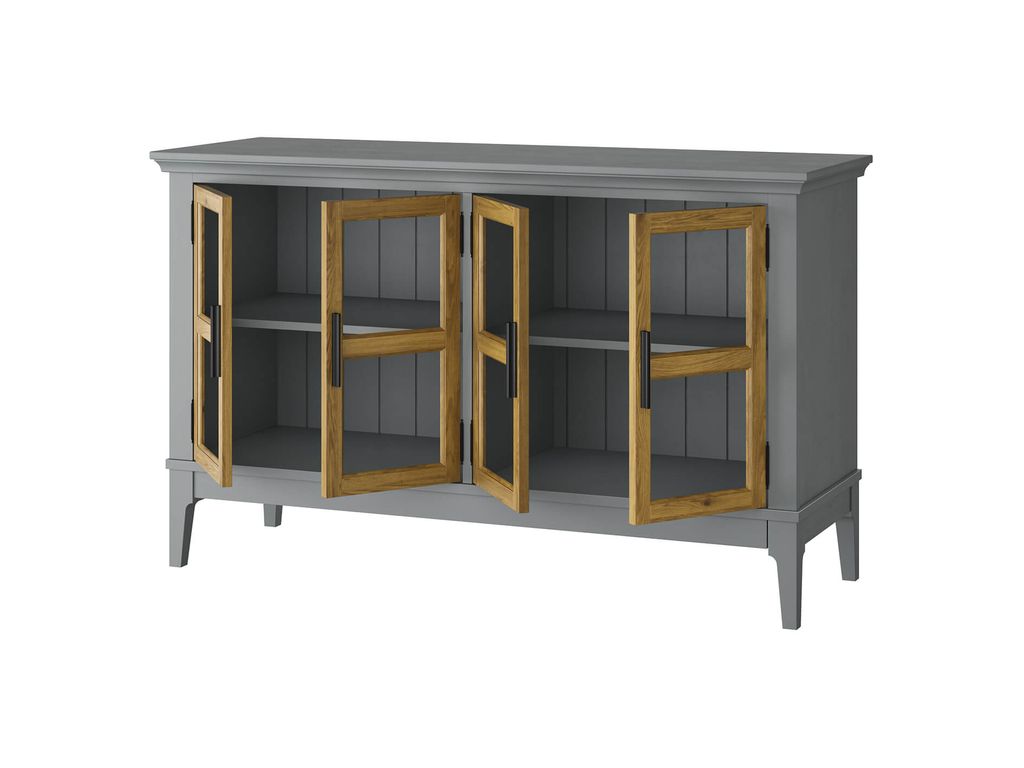 Описание: тумба ТВ состоит из двух отсеков за четырьмя стеклянными дверками. Внутри две широкие полки.