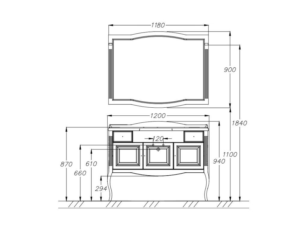 Размер зеркала (Ш×В×Г), мм 1180×900×22