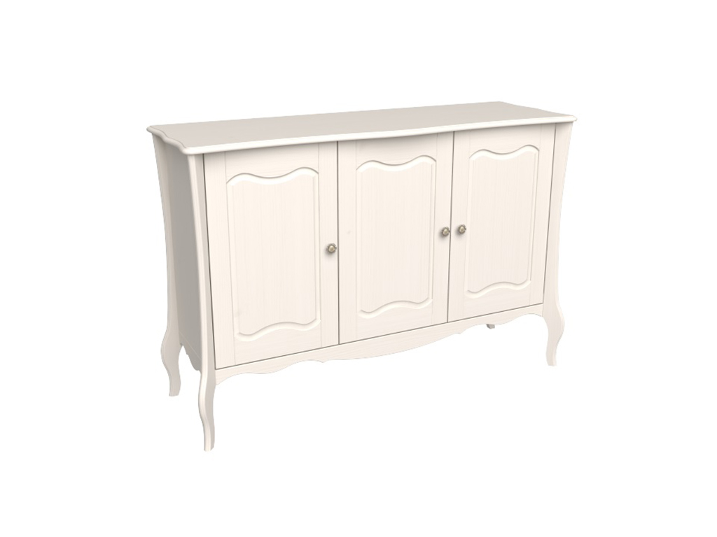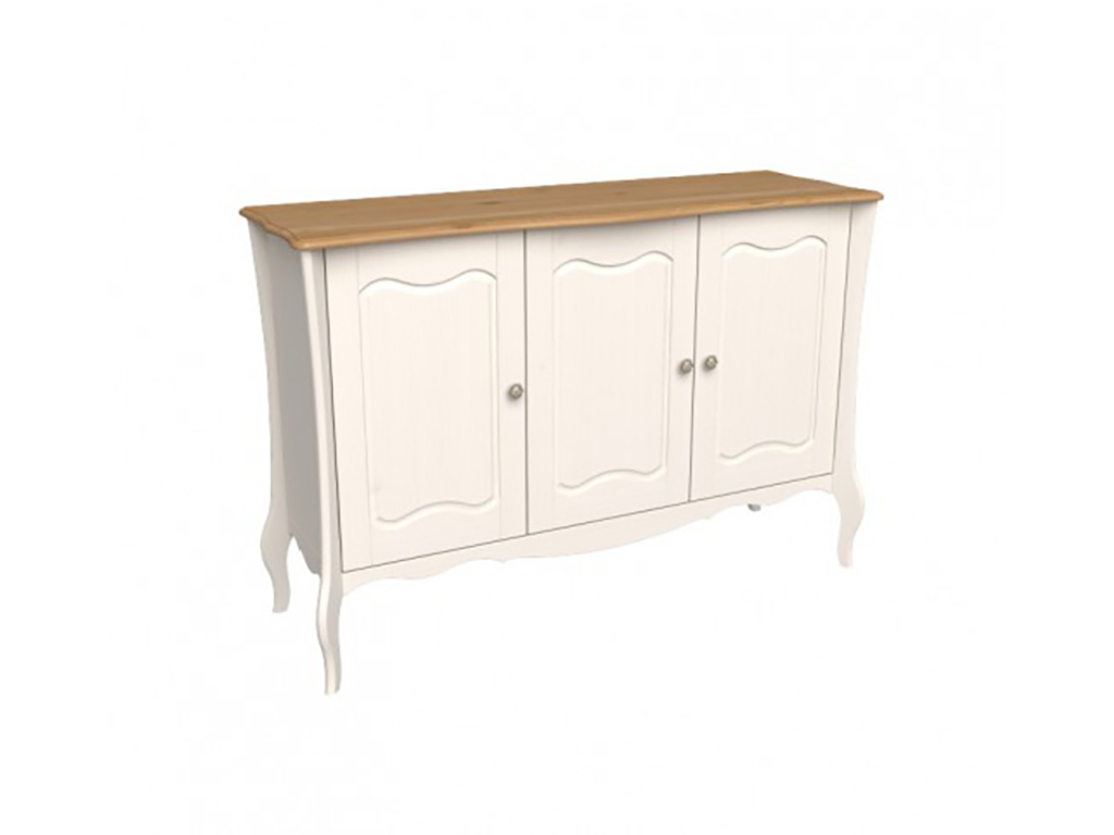 Описание: комод с тремя дверками из массива сосны. За каждой дверью расположено по две полки, которые регулируются по высоте.