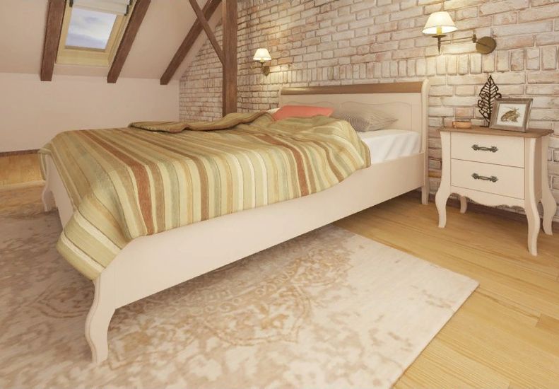 Описание: спальное место 160х200, высота царги 39 см, высота матраса (20 см) уложенного на решетку будет составлять 51 см от пола. Покрытие - укрывистый бежевый воск, структура древесины почти не просматривается. Матрас и решетка в комплект не входят и приобретаются отдельно.